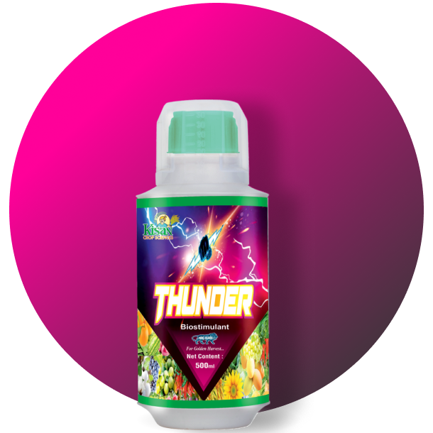 Kisan Plant Care's Thunder enhances plant metabolic activities, promoting vigorous growth. It also stimulates the plant’s immune response, providing strong resistance against larvae, ensuring healthier crops. Fortify your crops with Kisan Plant Care's Thunder, ensuring robust growth and enhanced pest resistance!